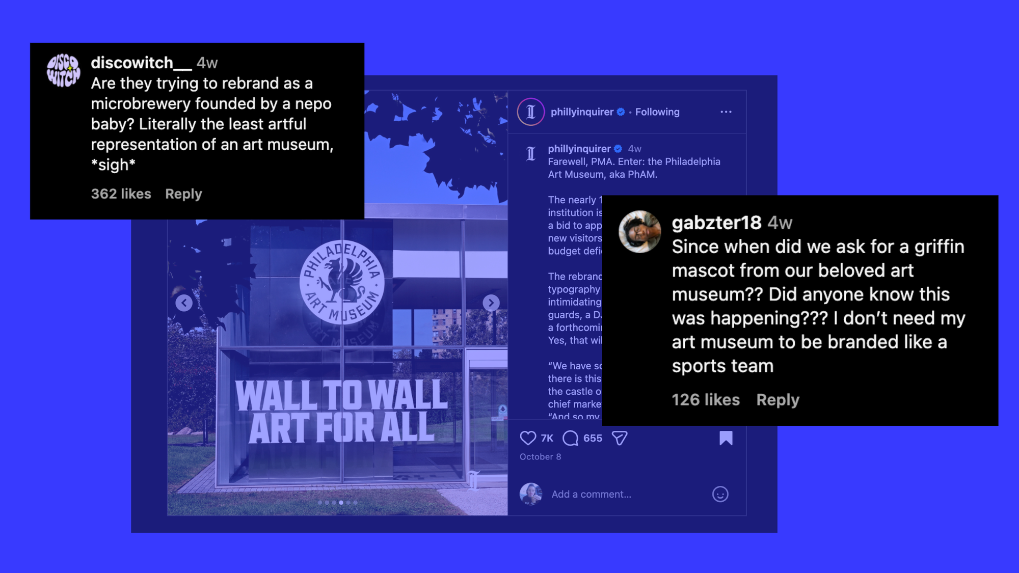 It’s a good question — but can a rebrand really change behavior, or does it just change how the museum looks to itself and others? Brand attachment is notoriously hard to measure, so institutions cast a wide net. Defy, a Philly-based agency, summed it up in their reaction video: the arts aren’t funded by the arts community, so museums have to appeal to the broadest audience, including corporate sponsors. The brand must be palatable, sellable, universal. But in chasing universal appeal, local identity can suffer — and here, it did.